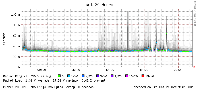 Hmmm also bei mir ist abgesehen von einem Ausfall heute Vormittag zwischen 9:40 und 11 Uhr die ganze Zeit das Netz da... Ich hab leider die letzte Zeit den Rechner nicht mehr Tag und Nacht laufen, kann deshalb leider keine vernünftige Statistik abliefern aber soooo übel war das ja nun auch nicht...